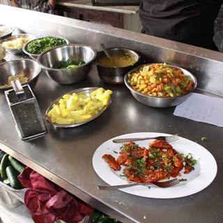 We followed the advice of the happy gang (Shushi and the Latinos) and went to a really beautifully located restaurant " Sun N Moon rooftop" on our first night in Udaipur. The honey chilli potatoes and the curries were so good we asked for the recipes and inquired on the possibilities of doing a cooking class. In response one of the 4 owners of the restaurant came to speak to us and kindly proposed that we go to their kitchen the day after and do a trial cooking class. His name is Jayanth (J) and as many young & entrepreneurial business men in India he is only 25 years old. When he speaks though he sounds very well educated and knowledgeable. The day after we went to the restaurant for breakfast to enjoy the early morning view on the top table they have and had a long pleasant conversation with J who enjoys to speak about politics. We later found out that the 3 favourite topics of conversation in Indian are politics, cricket and Bollywood; no food because "food they just eat" . The same afternoon we went back for the cooking class but the kitchen was too busy so we agreed to go back the day after at lunch time. The cooking class was more to say a quick 30 minutes full immersion into an Indian kitchen. The chef was cooking and explaining and showing ingredients all at the same time. He cooked the honey chilli potatoes and a paneer curry and some chapati on the spot. Indian cooking actually takes a lot of preparation especially curries with thick gravies which can take more than 2 hours to make the creamy delicious consistency. I was honestly shocked by the amount of oil, butter, cream and condensed milk they use to make the curry dishes, not a very healthy cuisine if you consider western standards. Still, the result was so yummi and flavourful we definitely want to try making it again. After another long conversation and exchange with J and Vicky (the bar tender partner) we left the restaurant and promised we will keep in touch and would wait for their emails with the recipes to replicate it and cook for our friends. Still waiting for the email, but I'm sure we will get it.